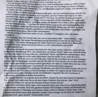Deine Eltern oder Großeltern verfolgten Juden und mordeten meine Ahnen in Polen und Griechenland, während meine Eltern und Großeltern Partisanen gegen die Nazis waren. Sie riskierten ihr eigenes Leben für die Freiheit von autoritären Regimen, die Meinungen verboten, Sozialisten verfolgten, Parteien wie die SPD verboten und Oppositionelle ermordeten. Du sprichst von der Schuld des Christentums an den Hexenverbrennungen, schweigst aber über Dietrich Bonhoeffer, Edith Stein oder den Kreisauer Kreis – Menschen, denen gerade ihr Glaube an Jesus den Mut gab, sich gegen Hitler zu stellen und dafür mit dem eigenen Leben zu bezahlen. Es ist das Beispiel des mutigen Jesus, der ohne Angst die Wahrheit laut aussprach und dafür von den hasserfüllten Pharisäern getötet wurde. An diesem Beispiel orientieren sich die Nachfolger und Freunde Jesu – zu denen auch ich gehöre, seit er mich vor drei Jahren aus einer schweren Depression gerettet hat. Kein Psychotherapeut, kein Politiker, kein Freund und kein Pfarrer hat mich gerettet. Er hat es getan – wundervoll. Als ich beschloss, meinem Leben kein Ende zu setzen und suchte die Heilung, erschien er mir in Form eines Films im Kino in Zgorzelec. Und er hat mich gerettet.